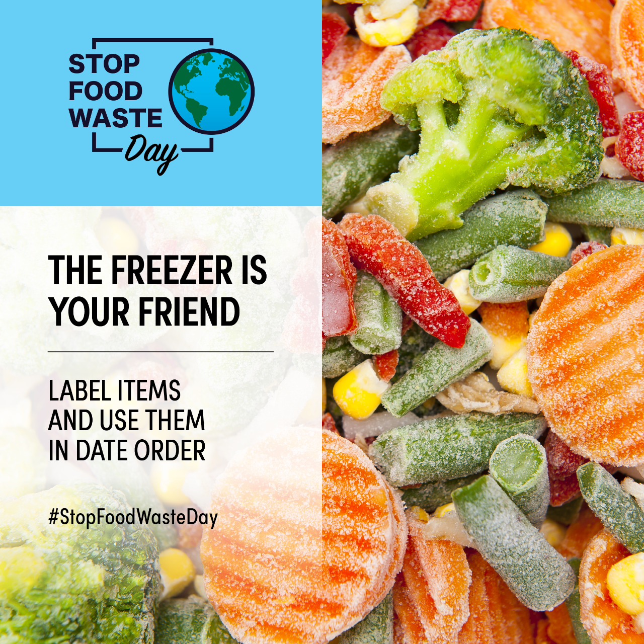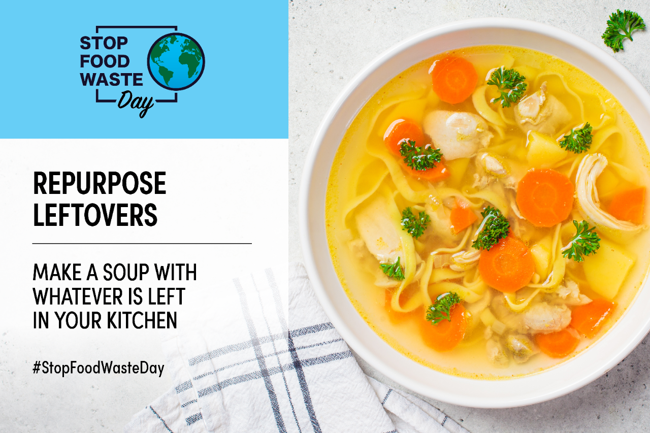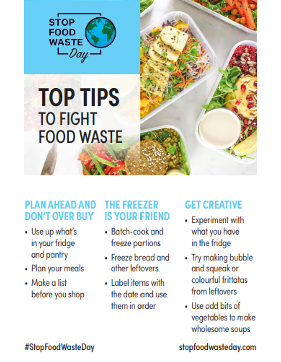 - Download the social media cards on this page and use them across your social media platforms, adding your own message and always using the hashtag: #StopFoodWasteDay and remembering to tag our accounts: